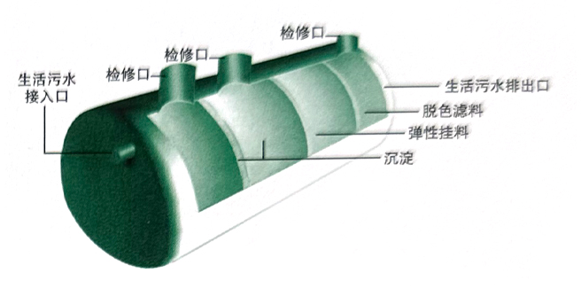 污水首先由进水口排到第一格,在第一格里比重较大的固体物及寄生虫卵等物沉淀下来,利用池水中的厌氧细菌开始初步发酵分解,经过第一格处理过的污水可分为三层:糊状粪皮、比较澄清的粪液和固体状的粪渣。